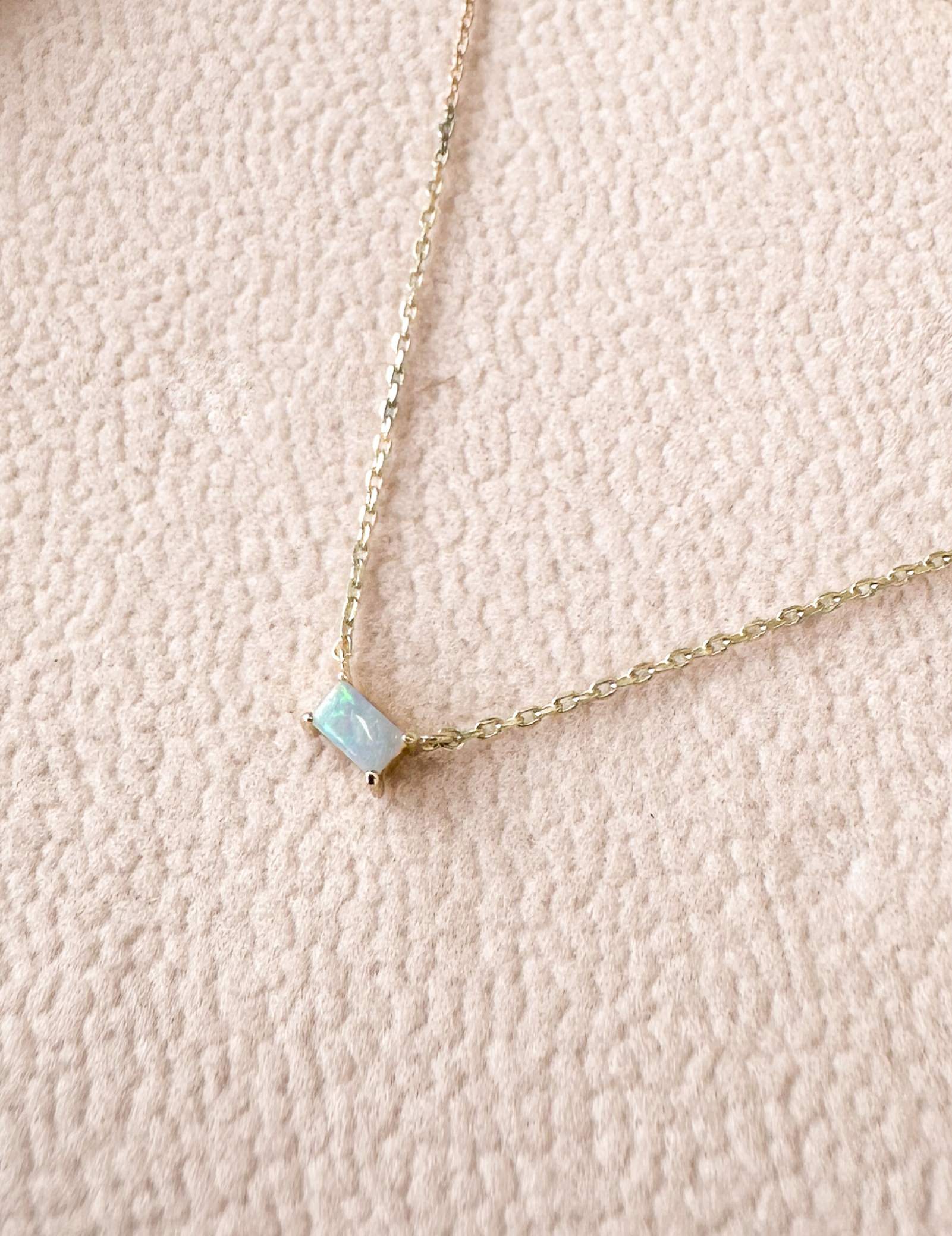 Crafted from exquisite 9K solid gold, this necklace showcases an opal with captivating brilliance.