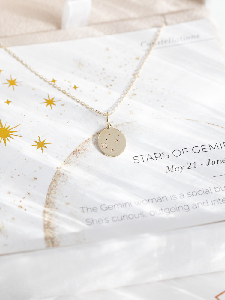 Journey through the cosmos with the Stars of Gemini Necklace. Inspired by the Gemini constellation, this necklace is a unique reflection of those born under the zodiac sign from May 21 to June 20.
